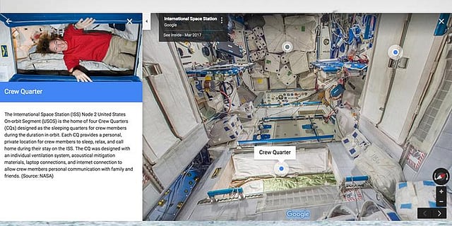 கடந்த 16 ஆண்டுகளாக விண்வெளி வீரர்கள் சர்வதேச விண்வெளி நிலையத்தில் இருந்து பல ஆய்வுகளை மேற்கொண்டு வருகின்றனர். பூமிக்குள் பயன்படுத்தப்பட்ட கூகுள் மேப் ஸ்ட்ரீட் வியூ, பூமிக்கு அப்பால் சென்று விண்வெளியிலும் காலடி பதிப்பதற்கான முயற்சிகளில் கூகுள் மேப் இறங்கியுள்ளது.
