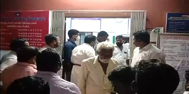 இந்த நிலையில் நேற்று மாலை துப்புரவு பணி முடிந்து வீட்டிற்கு சென்று கொண்டிருந்ததார். அப்போது அவரது வீட்டின் அருகே வசிக்கும் மாற்று கட்சியை சேர்ந்த வினு (40) என்பவர் அவரை வழிமறித்து "எனது வீட்டில் நீ எப்படி வாக்கு கேட்கலாம்" எனத் தாக்கி விட்டு தப்பி சென்றுள்ளார். இதில் ராஜேந்திரனுக்கு தலையில் பலத்த காயம் ஏற்பட்ட நிலையில், தனது மகன் மற்றும் உறவினர்களுடன் புதுக்கடை காவல் நிலையத்தில் புகார் கொடுக்க சென்றுள்ளார்.