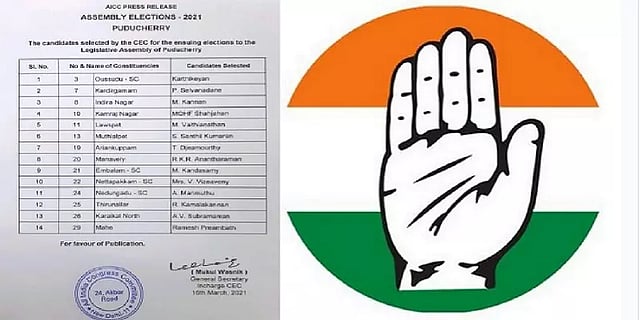 புதுச்சேரியில் அதிமுக, பாஜக ஆகிய கட்சிகள் தங்கள் வேட்பாளர்களை அறிவித்த நிலையில் தற்போது காங்கிரஸ் கட்சியும் வேட்பாளர் பட்டியலை வெளியிட்டுள்ளது.
