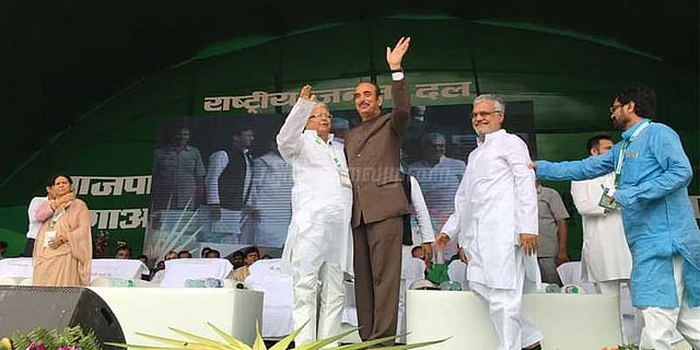 பீகார் தலைநகர் பாட்னாவில், ராஷ்ட்ரிய ஜனதா தளம் அழைப்பு விடுத்துள்ள மாநாட்டில் பல்வேறு கட்சிகளின் தலைவர்கள் பங்கேற்றுள்ளனர்.