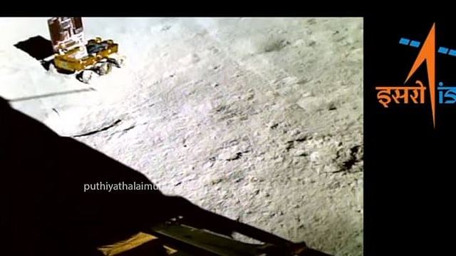 நிலவின் தென் துருவத்தில், ரோவர் அழகாக ஊர்ந்துசெல்லும் காட்சியை வெளியிட்டுள்ளது இஸ்ரோ. இந்த அழகான காட்சியை க்யூட்டாக படம்பிடித்து அனுப்பியுள்ளது லேண்டரிலுள்ள இமேஜர் கேமரா.
