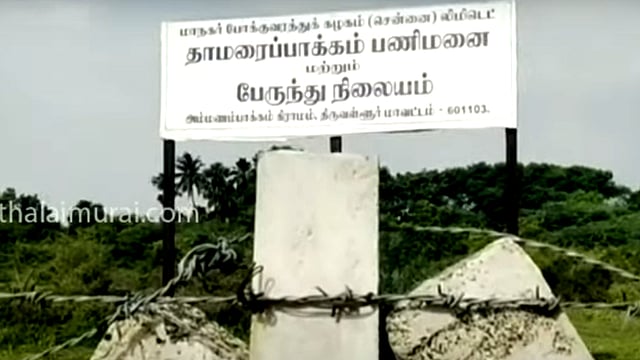 தாமரைப்பாக்கம் கூட்டு சாலை பகுதியில் சுமார் 10 ஆயிரத்திற்கும் மேற்பட்டோர் வசித்து வருகின்றனர். இந்நிலையில், இங்கு வசிக்கும் மக்கள் கூட்டு சாலையில் வரும் பேருந்துகள் மூலம் பள்ளி, கல்லூரிகளுக்குச் சென்றுவருவது வழக்கம்.