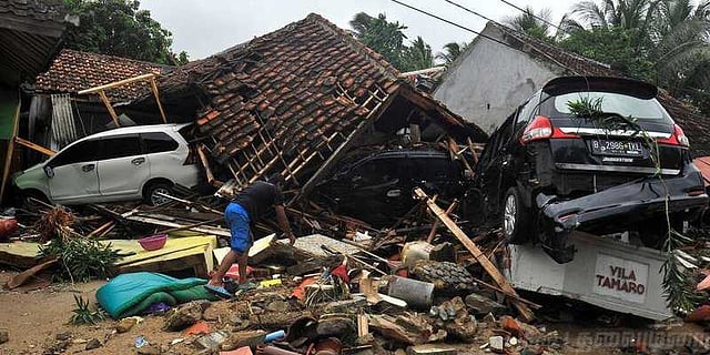 இந்தோனேஷியாவில் ஜாவா, சுமத்ரா தீவுகளுக்கு இடையே சுந்தா ஜலசந்தி உள்ளது. அங்கு அமைந்துள்ள அனக் கிரகட்டாவ் எரிமலையில் வெடிப்பு ஏற்பட்டதைத் தொடர்ந்து கடலுக்கு அடியில் நிலச்சரிவு ஏற்பட்டது.