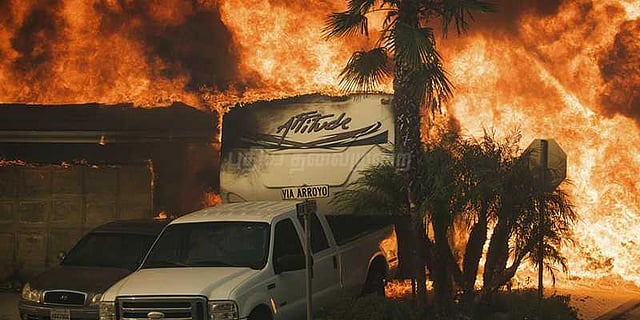 அமெரிக்காவின் கலிபோர்னியா மாகாணத்தில் காட்டுத்தீ ஏற்பட்டுள்ளது. கலிபோர்னியா மாகாணத்தில் உள்ள வடக்கு சான்டியாகோ பகுதியில் சுமார் 10 ஏக்கர் பரப்பி்ல் எரியத் தொடங்கிய காட்டுத்தீ, அடுத்த சில மணி நேரங்களில் 2 ஆயிரத்து 500 ஏக்கருக்குப் பரவியது. இதனால், வானில் கடும் புகை மூட்டம் எழுந்துள்ளது.