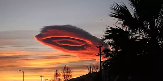 இந்த மர்ம மேகத்தை துருக்கியில் சில நகரங்களில் காணமுடிந்தது. லெண்டிகுலார் மேகங்கள் என அழைக்கப்படும் இவை விண்வெளி ஆராய்ச்சியாளர்களை ஆச்சர்யத்தில் ஆழ்த்தியுள்ளது. இந்த பயங்கரமான ராட்சத மேகமானது தனது நிறத்தை ஆரஞ்சிலிருந்து மஞ்சள், பிங்க் என மாற்றியதுதான் அந்த ஆச்சர்யத்துக்கு காரணம். தற்போது துருக்கியின் பர்சா நகரில் தோன்றிய இந்த மேகம்தான் இணையத்தில் கவனத்தை பெற்றுவருகிறது.