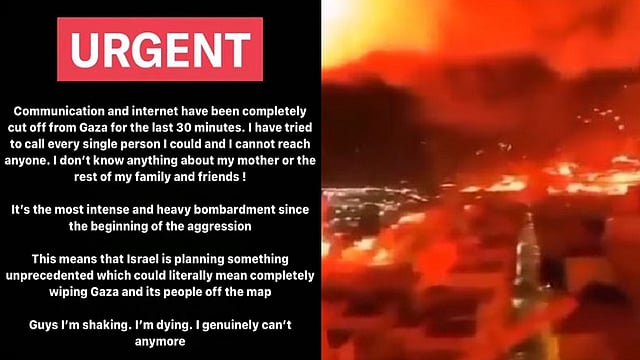 20 நாட்களை கடந்துள்ள இந்த போரில், உட்சபட்சமாக சாதரண பொதுமக்களையும் பொருட்படுத்தாமல், உலகத்தின் தொலைத்தொடர்புகள் அனைத்தும் இன்று முடக்கப்பட்டுள்ள சம்பவம் பேரதிர்ச்சியை ஏற்படுத்தியுள்ளது. ஆம்புலன்சுக்கு கூட அழைக்க முடியாமலும், அருகில் இருப்பவர்களிடம் கூட பேச முடியாமலும், வானம் முழுவதுமே குண்டுகள் துளைத்தலால் சிகப்பாக மாறி காணப்படுவதாக தகவல்கள் தெரிவிக்கின்றன.