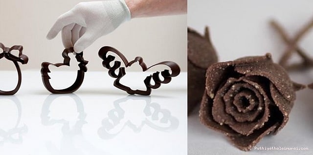 பெல்ஜியத்தில் 3டி பிரிண்டிங் தொழில்நுட்பத்தில் சாக்லேட் தயாரிக்கப்பட்டு வருகிறது. இதன் மூலம் வாடிக்கையாளர்கள் விரும்பும் வடிவில் சாக்லேட் தயாராகிறது.