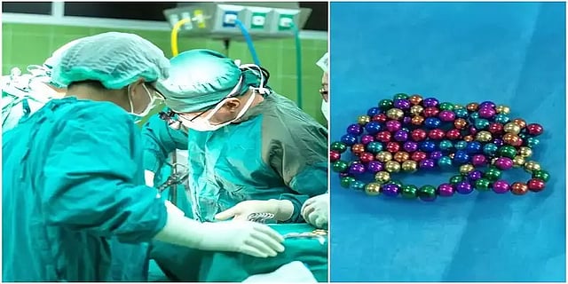 ஆனால் 5 நாட்கள் ஆகியும் பந்து வெளியே வராததால் சிறுவனை மீண்டும் மருத்துவமனைக்கு அழைத்துச் சென்றுள்ளனர். அங்கு எக்ஸ்-ரே எடுத்துப் பார்த்ததில், சிறுவனின் உடலில் ஏராளமான மணிகள் இருந்ததைப் பார்த்த மருத்துவர்கள் அதிர்ச்சியடைந்துள்ளனர். 4 மணிநேர அறுவைசிகிச்சைக்குப் பிறகு சிறுவனின் உடலிலிருந்து 123 காந்த மணிகளை அகற்றியுள்ளனர்.