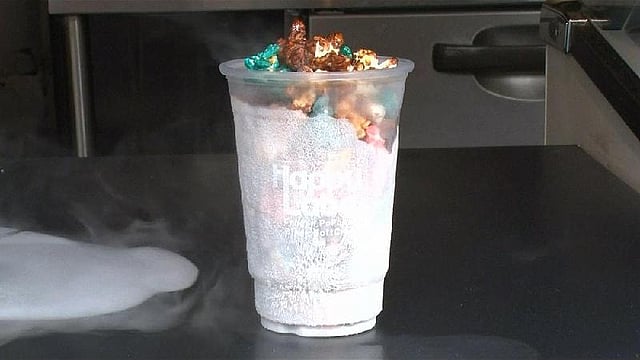 ஒசாகா மாகாணத்திலுள்ள குளிர்பான கடை ஒன்றில் இனிப்பு சோளத்துடன் கிரீமி பாப்கார்ன்களை தயாரித்து அதனுடன் 200 டிகிரி செல்சியஸில் உள்ள திரவ நைட்ரஜனை சேர்க்கின்றனர். அப்போது அந்த பாப்கார்ன் உறைந்த நிலைக்கு மாறுகிறது. அதனை சாப்பிடும்போது குளிர்ச்சியாகவும், நாவில் வைத்தவுடன் உருகிவிடுவதாகவும் வாடிக்கையாளர்கள் கூறுகின்றனர்.