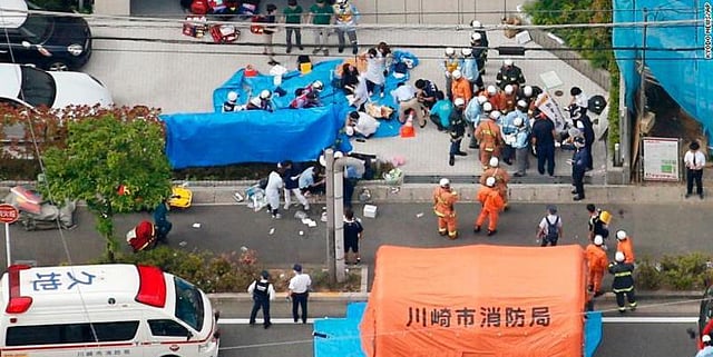 ஜப்பானின், கவாசாகி நகரின் நோபோரிடோ பகுதியில் உள்ள ரயில்வே ஸ்டேஷன் அருகே, சுமார் 50 வயது மதிக்கத்தக்க நபர் ஒருவர் கையில் கத்தியுடன் நின்று கொண்டிருந்தார். அருகில் பேருந்து நிறுத்தம். உள்ளூர் நேரப்படி இன்று காலை வேலைக்குச் செல்பவர்கள், பள்ளிக்குச் செல்பவர்கள், என அந்த சாலை பரபரப்பாக இருந்தது. அப்போது பள்ளி பேருந்துக்காக, ஏராளமான குழந்தைகள் அங்கு காத்திருந்தனர். அவர்கள் அனைவரும் ஆறு அல்லது ஏழு வயது குழந்தைகள் எனக் கூறப்படுகிறது.