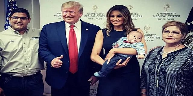 அப்போது தாயின் கையில் இருந்த குழந்தை பாவ்ல் அதிர்ஷ்டவசமாக உயிர் தப்பியது. இந்நிலையில் டெக்சாஸ் மாகாணத்துக்கு வருகை தந்த அமெரிக்க அதிபர் ட்ரம்ப் குழந்தையை சந்திப்பதாக தெரிவிக்கப்பட்டது. அதன்படி குழந்தையை கையில் ஏந்தி போஸ் கொடுத்த ட்ரம்பின் மனைவி மெலேனியா புகைப்படத்துக்கு சிரித்தபடியே போஸ் கொடுத்தார்.