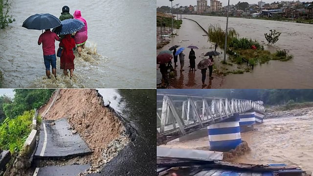 நேபாளத்தின் 7 மாநிலங்களில் 5இல் மழை பாதிப்புகள் ஏற்பட்டுள்ளன. பாக்மதி உள்ளிட்ட ஆறுகளில் வெள்ளம் கரை புரண்டு ஓடுகிறது. மேலும் சில நாட்களுக்கு மழை நீடிப்பதுடன் மண் சரிவுகளும் ஏற்படும் என எச்சரிக்கப்பட்டுள்ளது. மோசமான வானிலை காரணமாக காத்மாண்டு விமான நிலையத்தில் சேவைகளும் நிறுத்திவைக்கப்பட்டுள்ளன.