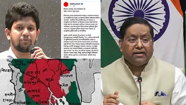 இந்த நிலையில், முகமது யூனுஸின் நெருங்கிய உதவியாளரும் இடைக்கால அரசாங்கத்தின் ஆலோசகருமான மஹ்ஃபுஸ் ஆலம், ”மேற்கு வங்காளம், அசாம் மற்றும் திரிபுரா ஆகிய மாநிலங்கள் வங்காளதேசத்தின் ஒரு பகுதி” எனக் கூறியிருப்பது சர்ச்சையை ஏற்படுத்தியுள்ளது. 1971-ஆம் ஆண்டு நடைபெற்ற போரை நினைவுகூரும் வகையில், ‘விஜய் திவாஸ் தின’த்தில் இந்தப் பதிவு வெளியிடப்பட்டுள்ளது. அப்போதுதான், இந்தியாவின் கிழக்கு மற்றும் வடகிழக்கு பிரதேசங்களின் சில பகுதிகளை இணைப்பது பற்றி ஆலம் தெரிவித்துள்ளார்.