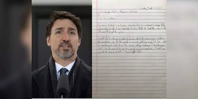 "கொரோனா வைரஸ் பற்றி நான் உங்களிடம் இரண்டு கேள்விகளைக் கேட்க விரும்புகிறேன். கனடாவில் உள்ள அனைத்து மக்களும் நோய்வாய்ப்படுவதற்கான சாத்தியங்கள் உள்ளனவா? மேலும், வைரஸில் இருந்து விலகி இருப்பதை உறுதிப்படுத்த நீங்கள் என்ன செய்கிறீர்கள்? தயவுசெய்து சிறந்தவற்றைச் செய்யுங்கள்”என்று எழுதியுள்ளான். அதனைத் தொடர்ந்து, “இது எனது தாத்தா, பாட்டி யாரிடமிருந்து கிடைப்பதை நான் விரும்பவில்லை. அனைத்துவகையான கடின உழைப்பிற்கும் நன்றி. தயவுசெய்து பதில் எழுதுங்கள்” என நீண்டு செல்கிறது அந்தக் கடிதம்.