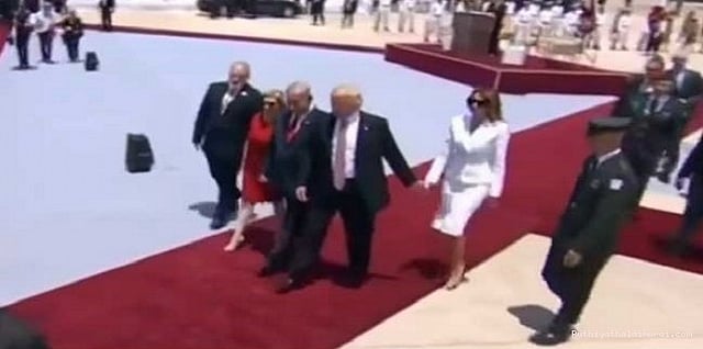இரண்டு நாள் சுற்றுப்பயணம் மேற்கொண்ட அமெரிக்க அதிபர் டொனல்ட் டிரம்ப், அவரது மனைவி மெலானியா டிரம்புடன் சவுதி அரேபியாவிலிருந்து, விமானம் மூலம் இஸ்ரேல் சென்றார். விமான நிலையத்திலிருந்து அவர்களுக்கு சிறப்பான வரவேற்பு அளிக்கப்பட்டது. அப்போது முன்னாள் சென்ற அதிபர் டிரம்ப் தனது மனைவியின் கையை பிடிக்க முயன்றார். ஆனால், மீடியா அவர்களை படம்பிடித்தபடி இருந்ததை கூட பொருட்படுத்தாமல் அதிபரின் மனைவி மெலானியா, அவரின் கையை தள்ளி விட்டார். அதன்பின் அதிபர் டிரம்ப் எதுவும் நடைபெறாததை போல் சாதாரணமாக நடந்து சென்றார். இந்த காட்சிகள் தற்போது சமூக வலைதளங்களில் வேகமாக பரவி வருகிறது.