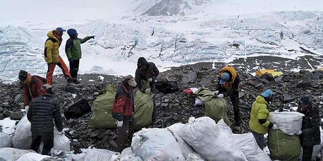 இப்படி மலையேறுபவர்கள் ஆக்ஜிசன் குடுவை, மதுபாட்டில்கள், உணவுப் பொட்டல வகைகள், மருத்துவ பொருட்கள் என பல பொருட்களை கையோடு எடுத்துச் செல்கின்றனர். ஆனால் அவற்றை பயன்படுத்திவிட்டு அப்படியே விட்டுவிட்டு வந்துவிடுகின்றனர். இதனால் எவெரெஸ்ட் சிகரத்தில் குப்பைகள் சேர்ந்து சுற்றுச்சூழல் பாதிக்கப்படுவதாக கூறப்படுகிறது. இதனால் எவரெஸ்ட்டை சுத்தம் செய்யும் பணியை நேபாள அரசு தொடங்கியது.நேபாள ராணுவத்தினரின் இணைந்து கடந்த மாதம் ஏப்ரல் 14 ஆம் தேதியில் இருந்து சுகாதாரக் குழுவினர் எவரஸ்ட்டில் குப்பைகளை அகற்றும் பணியில் ஈடுபட்டு வந்தனர்.