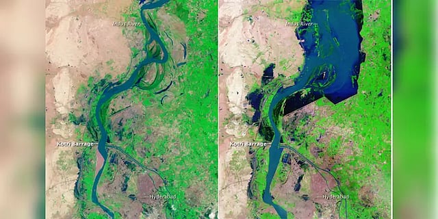 பாகிஸ்தானில் வெள்ளத்தால் ஏற்பட்ட பேரழிவு குறித்த செயற்கைகோள் புகைப்படங்களை நாசா வெளியிட்டுள்ளது.