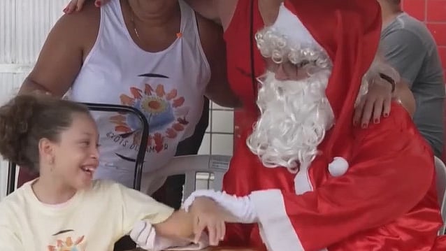 ரியோ டி ஜெனிரோ நகரின் தீயணைப்புத்துறை தலைவராக இருக்கும் ஃபாப்ரிசியா ஸ்கார்பி என்பவர், தண்ணீரில் செல்லும் ஜெட் ஸ்கை எனப்படும் வாகனத்தில் பரிசு பொருட்களை விநியோகிக்கும் முயற்சியில் ஈடுபட்டுள்ளார்.