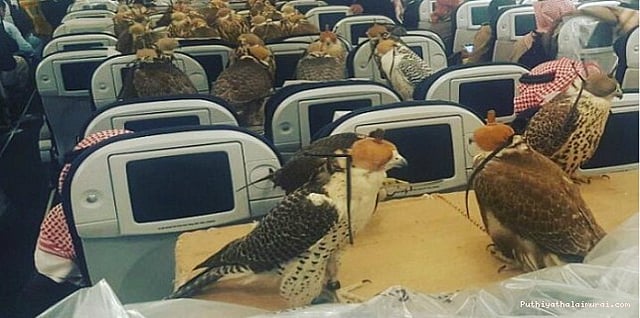 சவூதிஅரேபிய இளவரசருடன், 80 பருந்துகள் விமானத்தில் பயணம் செய்த புகைப்படம் இணைய தளத்தில் வெளியாகி, வைரலாகி வருகிறது.