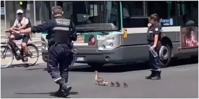 அந்த வகையில், பிரான்ஸ் நாட்டின் பாரிஸின் சாலையில் வாத்து கூட்டத்துக்காக மொத்த சாலையையும் சற்று நேரத்துக்கு மறித்திருக்கிறார் பாதுகாப்பு பணியில் ஈடுபட்டிருந்த அதிகாரி.