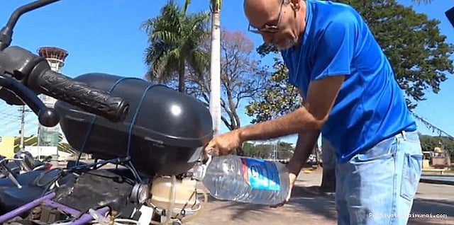பெட்ரோலுக்கு பதில் தண்ணீரை எரிபொருளாகக் கொண்டு இயங்கும் பைக் ஒன்றை பிரேசில் நாட்டு முதியவர் ஒருவர் உருவாக்கியுள்ளார்.