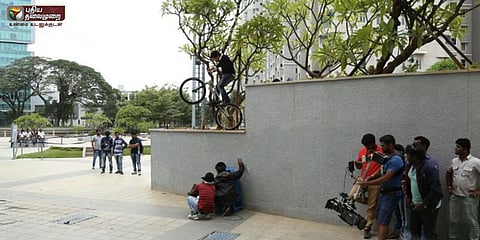 இந்தப் படத்துக்காக பிரமாண்ட ஆக்ஷன் காட்சி ஒன்று சமீபத்தில் பெங்களூரில் படமாக்கப்பட்டது. இதில், ஹாங்காங்கைச் சேர்ந்த லீஹோனியு என்ற புகழ் பெற்ற சைக்கிள் ஸ்டன்ட் நிபுணர், ஸ்டன் சிவாவுடன் இணைந்து பணியாற்றினார். லீஹோனியு பல ஹாலிவுட் படங்களில் பணியாற்றியவர். அதர்வாவுக்கு அவர் சைக்கிள் ஸ்டன்ட் பயிற்சி அளித்தார். அதர்வாவுடன் பல சண்டை கலைஞர்களும் பங்கு பெற்றனர்.