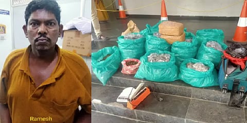 அதன்படி, ஐஸ் ஹவுஸ் பகுதியைச் சேர்ந்த கஞ்சா வியாபாரி ரமேஷ் என்கிற கஞ்சா ரமேஷ் என்பவர் கஞ்சா வியாபாரத்தில் ஈடுபட்டு வந்தது தெரியவந்தது. அவரை கடந்த 2 மாதங்களாகப் பின்தொடர்ந்த காவல்துறையினர் திட்டமிட்டுப் பிடித்தனர். அவர் காய்கறி ஏற்றி வந்த மினி வேனை கோட்டூர்புரம் ஏரிக்கரை சாலையில் வைத்து மடக்கிப் பிடித்து சோதனை செய்தனர். உள்ளே காய்கறி மூட்டைகளோடு கஞ்சாவும் இருந்தது தெரியவந்தது. இதைத்தொடர்ந்து சுமார் 33.5 கிலோ கஞ்சாவை காவல்துறையினர் பறிமுதல் செய்தனர். பின்னர் ரமேஷிடம் விசாரணை நடத்திய போது, அவர் சென்னையில் ஒரு பெரிய கூட்டத்துடன் இணைந்து கஞ்சா விற்றதாகத் தெரிவித்தார்.