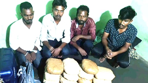 அப்போது வீடு ஒன்றில் 15 கிலோ கஞ்சாவை பதுக்கி வைத்து விற்பனை செய்ய முயன்றது தெரியவந்தது. இதனைத் தொடர்ந்து 15 கிலோ கஞ்சாவை பறிமுதல் செய்த போலீசார், ஒடிசா மாநிலத்தைச் சேர்ந்த சகோர் மகானந்தா, பிங்கு பிபார், சிபா மகானந்தா சுப்ராட் பெரோ, நித்ய நந்தா போரிடா, ஆகிய 5 பேரையும் கைது செய்து சிறையில் அடைத்தனர்.