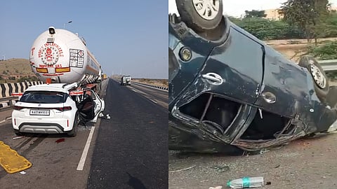 அப்போது, சித்ரதுர்க மாவட்டம் ராம்புரம் பகுதியில், தேசிய நெடுஞ்சாலையில் கார் வேகமாக சென்று கொண்டிருந்தபோது எதிர்பாராத விதமாக காரின் முன்பக்க டயர் வெடித்தது. அந்த நேரத்தில் வேகமாக சென்று கொண்டிருந்த கார், ஓட்டுநரின் கட்டுப்பாட்டை இழந்து சாலையில் தலைகுப்புற கவிழ்ந்து விபத்துக்குள்ளானது.