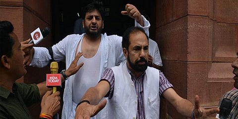 காஷ்மீருக்கு சிறந்து அந்தஸ்து ரத்து செய்யப்பட்டதற்கு எதிர்ப்பு தெரிவித்து அரசியல் சாசன பிரதிகளை கிழிக்க முயற்சித்த பிடிபி கட்சி எம்பிக்கள் இருவர் நாடாளுமன்றத்தில் இருந்து வெளியேற்றப்பட்டுள்ளனர்.