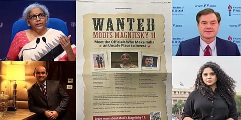 அந்த விளம்பரத்தில் 'இந்தியாவை அந்நிய முதலீட்டிற்கு பாதுகாப்பற்ற இடமாக மாற்றிய அதிகாரிகளைப் பாருங்கள்' என்று எழுதப்பட்டுள்ளது. மத்திய நிதியமைச்சர் நிர்மலா சீதாராமன், உச்ச நீதிமன்ற நீதிபதிகள், இந்திய அமலாக்க இயக்குநரகம் உள்ளிட்டவர்களுக்குப் பொருளாதாரத் தடைகள் விதிக்கப்பட வேண்டும் என்று அந்த விளம்பரத்தில் கூறப்பட்டு உள்ளது.