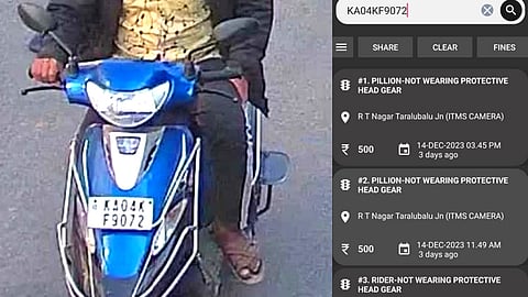 இந்நிலையில், ஆர்.டி.நகரின் அருகே ஒரு ஸ்கூட்டி பெப் பிளஸ் வாகன ஓட்டி ஹெல்மெட் அணியாமல் சென்றதை, சிக்னலில் பொருத்தப்பட்டிருந்த கேமரா கண்களில் பட்டுள்ளது. அதை படம் பிடித்த கேமரா, கட்டுப்பாட்டு அறைக்கு அனுப்பியுள்ளது. போலீசார் சோதனை செய்த போது, அந்த வாகனம் 643 முறை போக்குவரத்து விதிகளை மீறியதாக புகார்கள் பதிவாகி உள்ளன.