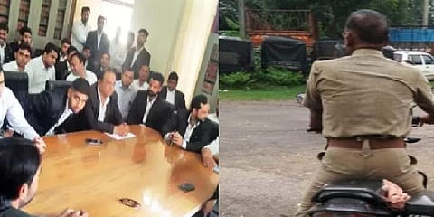 சில நாட்களுக்கு முன்பு உத்திரப்பிரதேசம் மாநிலம் பிஜ்னோரில் தலைக்கவசம் அணியாத வழக்கறிஞரை போலீசார் ஒருவர் வழிமறித்து அபராதம் விதித்துள்ளார். இது போலீசாருக்கும், அந்த வழக்கறிஞருக்கும் இடையே வாக்குவாதமாக மாறியுள்ளது. இதனையடுத்து செவ்வாய்க்கிழமை, பிஜ்னோர் நீதிமன்ற வளாகத்துக்குள் தலைக்கவசம் அணியாமல் இரு சக்கர வாகனம் ஓட்டிய காவலர்களை வழிமறித்த வழக்கறிஞர்கள் சாவிகளை பிடுங்கியும், டயர்களை பஞ்சரும் ஆக்கியுள்ளனர். இந்த சம்பவம் பெரும் சர்ச்சையை ஏற்படுத்தியுள்ளது.