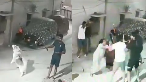 பக்கத்து வீட்டுக்காரரை கடிக்க முயன்ற வளர்ப்பு நாய்; உரிமையாளரை கொடூரமாக தாக்கிய நபர்கள்! #ViralVideo