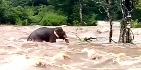 கேரளா: கரையேற முடியாமல் காட்டாற்று வெள்ளத்தில் சிக்கித் தவித்த காட்டு யானை