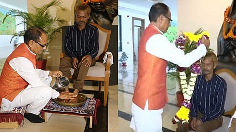 முகத்தில் சிறுநீர் கழிக்கப்பட்ட விவகாரம்: பழங்குடியின தொழிலாளியின் காலை கழுவிய ம.பி. முதலமைச்சர்!