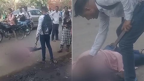 மகாராஷ்டிரா மாநிலம் மும்பையின் வசாய் கிழக்கு சின்ச்பாடா பகுதியின் சாலையில் இன்று காலை 8.30 மணிக்கு நடைபெற்ற சம்பவம், அப்பகுதி மக்களை அதிர்ச்சியடையச் செய்துள்ளது. அந்தச் சாலையில், இளம்பெண் ஒருவர் செல்கிறார். அப்போது அவருக்குப் பின்னால் ஓடிவரும் நபர், அவர் தலையில் ஒரு பெரிய ஸ்பானரைக் கொண்டு தாக்குகிறார். அந்த அடியில் அவர் அப்படியே தரையில் கீழே விழுகிறார். பின்னர், அவர் தலையை உயர்த்த முயல்கிறார்.