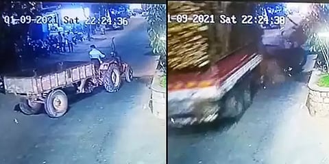 டிராக்டர் மீது லாரி மோதிய, பதைபதைக்க வைக்கும் சிசிடிவி காட்சி வெளியாகியுள்ளது.