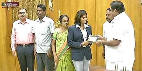 இந்தச் சாதனைகளைப் பாராட்டி அவருக்கு தலைமைச் செயலகத்தில் இன்று காலை ஊக்கத் தொகைக்கான காசோலையை முதல்வர் எடப்பாடி பழனிச்சாமி வழங்கினார்.
