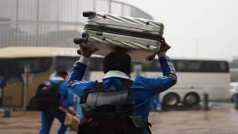இந்த நிலையில், பிசிசிஐ சார்பில் வெளியிடப்பட்டிருக்கும் வீடியோ ஒன்று இணையத்தில் வைரலாகி வருகிறது. அதில், இந்திய வீரர்கள் தங்களது உடைமைகள் இருக்கும் பெட்டியைத் தலையில் தூக்கிவைத்து ஓடுகின்றனர். இந்த காட்சிதான் பதிவு செய்யப்பட்டு வைரலாகி வருகிறது. அதாவது, வீரர்கள் இறங்கியபோது டர்பன் நகரில் மழை கொட்டியுள்ளது. அதிலிருந்து தப்பிப்பதற்காக, அவர்கள் தங்களது பெட்டிகளை தலைமேல் குடையாகப் பிடித்தப்படி ஓடுகின்றனர். இந்த காட்சியைத்தான் பிசிசிஐ தன்னுடைய எக்ஸ் தள பக்கத்தில் வெளியிட்டுள்ளது.