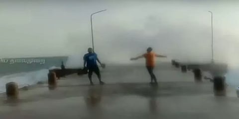 தனுஷ்கோடியில் 30 அடி உயரத்திற்கு எழுந்த கடல் அலைகள்: ஆபத்தை உணராமல் குளித்த பயணிகள்