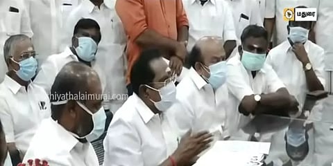 அதிமுக முன்னாள் அமைச்சர்கள் ஆர்.பி. உதயகுமார், செல்லூர் ராஜு மற்றும் அதிமுக எம்எல்ஏக்கள் மதுரை மாவட்ட ஆட்சியர் அலுவலகத்தில் ஆட்சியர் அணீஸ் சேகரை சந்தித்து மனு ஒன்றை அளித்தனர். அதில், மதுரை மாவட்டத்தில் கொரோனா தடுப்பு பணிகளை தீவிரப்படுத்துமாறு கோரிக்கை விடுத்திருந்தனர்.