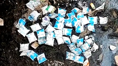 சென்னை: கால்வாயில் கொட்டப்பட்டுள்ள காலாவதியான ஆவின் பால் பாக்கெட்டுகள்