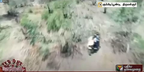 திருவள்ளூர் மாவட்டம் கும்மிடிப்பூண்டியில் ட்ரோன் கேமிராவை கண்ட காதல் ஜோடியும் கிரிக்கெட் ஆடியவர்களும் தலைதெறிக்க ஓட்டம் பிடித்தனர்.