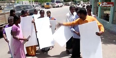 அமைச்சர் செல்லூர் ராஜுவை கண்டித்து தெர்மாகோலுடன் போராட்டம்
