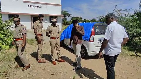 புதுக்கோட்டை மாவட்டம் நமுணசமுத்திரம் அருகே உள்ள இளங்குடிப்படி கிராமத்தில் திருச்சி ராமேஸ்வரம் தேசிய நெடுஞ்சாலை ஓரத்தில் நேற்று மாலை முதல் கார் ஒன்று நின்று கொண்டிருந்தது. இந்நிலையில் இன்று காலையும் கார் அதே இடத்தில் நின்றதால் சந்தேகமடைந்த மடத்து காவலாளி அடைக்கலம் என்பவர் கார் கண்ணாடிக்குள் பார்த்துள்ளார். அப்போது ஐந்து பேர் சந்தேகத்திற்கிடமான வகையில் உடல் அசைவின்றி இருந்துள்ளனர்.