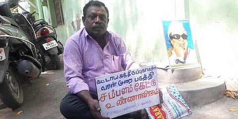 அத்துடன் தருமபுரி நெடுஞ்சாலை துறை கோட்ட பொறியாளர் அலுவலகத்தில் உண்ணாவிரத போராட்டத்தில் ஈடுபட்டுள்ளார்.