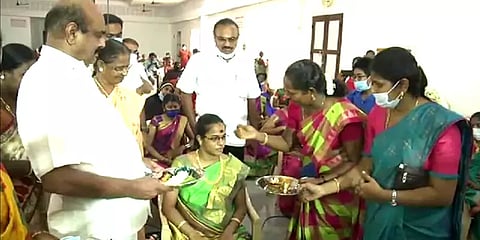 திருப்பூரில் சமூக நலம், ஒருங்கிணைந்த குழந்தைகள் வளர்ச்சித் திட்டம் ஆகிய துறைகளின் சார்பில் 100 பெண்களுக்கு சமுதாய வளைகாப்பு விழா நடைபெற்றது.