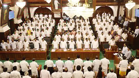 நீண்ட காலமாக நிலுவையில் உள்ள 10 சட்ட மசோதாக்களை ஆளுநர் ஆர்.என்.ரவி திருப்பி அனுப்பிய நிலையில், அவற்றை மீண்டும் நிறைவேற்றுவதற்காக சட்டமன்ற சிறப்புக் கூட்டம் இன்று நடைபெற்றது. இதில் ஆளுநரின் செயலுக்கு திமுக மற்றும் கூட்டணி கட்சிகள் கடும் கண்டனம் தெரிவித்த நிலையில், அதிமுக மற்றும் பாஜக வெவ்வேறு காரணங்களுக்காக வெளிநடப்பு செய்தன.