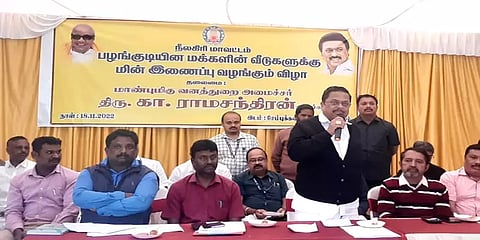 குன்னூர் அருகே சேம்புக்கரை பழங்குடியின கிராமத்தில் உள்ள 21 வீடுகளுக்கு 50 ஆண்டுகளுக்குப் பின் புதிய மின் இணைப்பை வனத்துறை அமைச்சர் கா.ராமசந்திரன் வழங்கினார்.